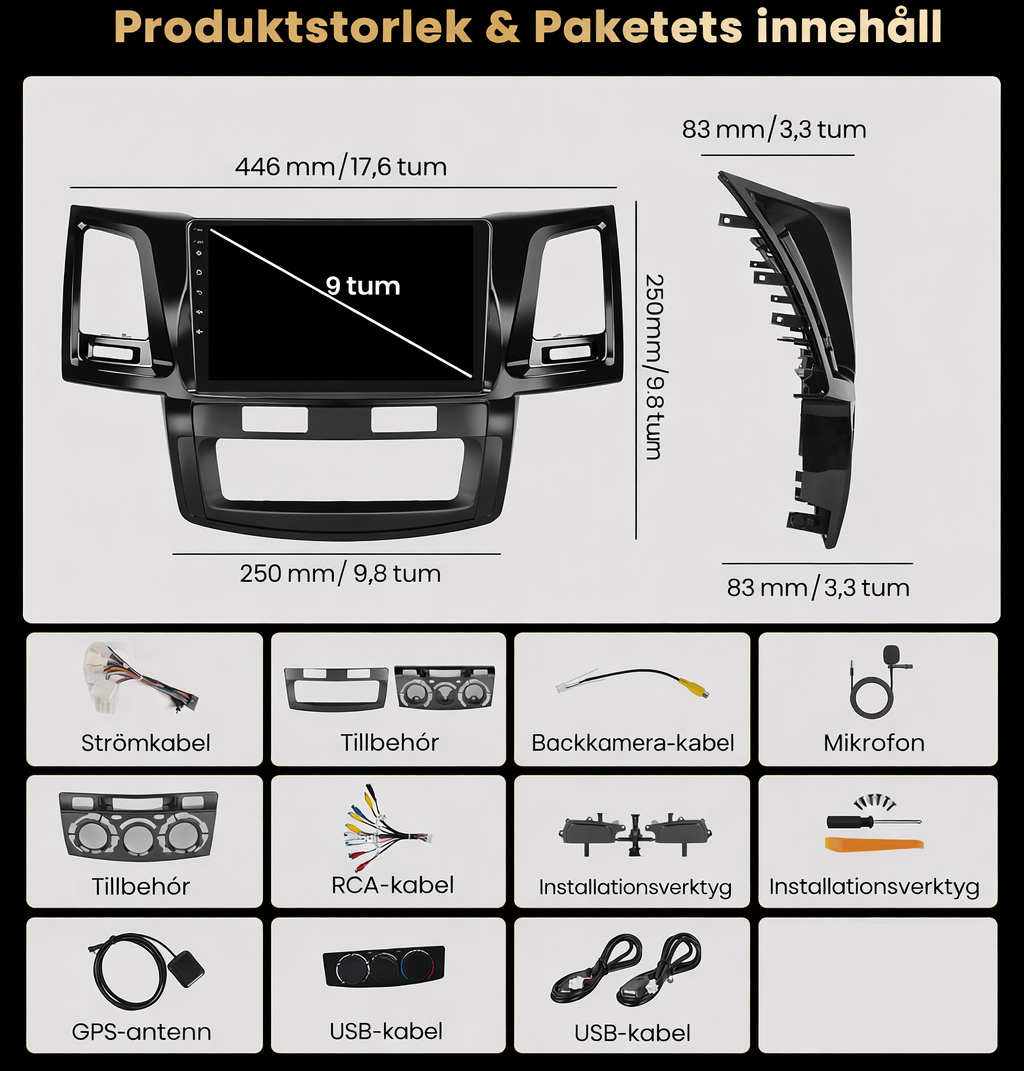 AZOM DNX Multimedia Spiller | TOYOTA Hilux Revo Vigo Fortuner 2007 – 2015 | 9″ IPS HD | Android | DAB+ | GPS | 2DIN